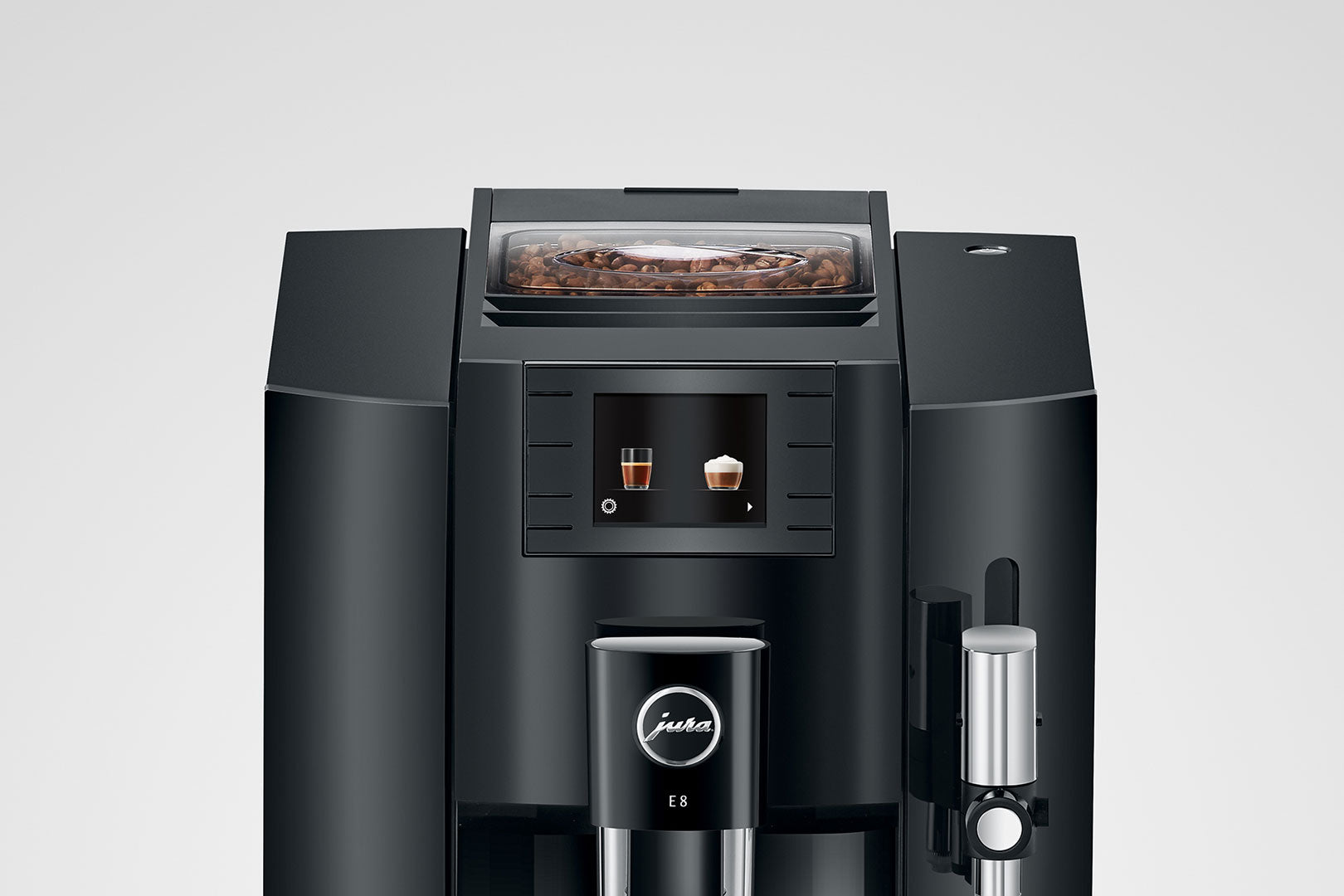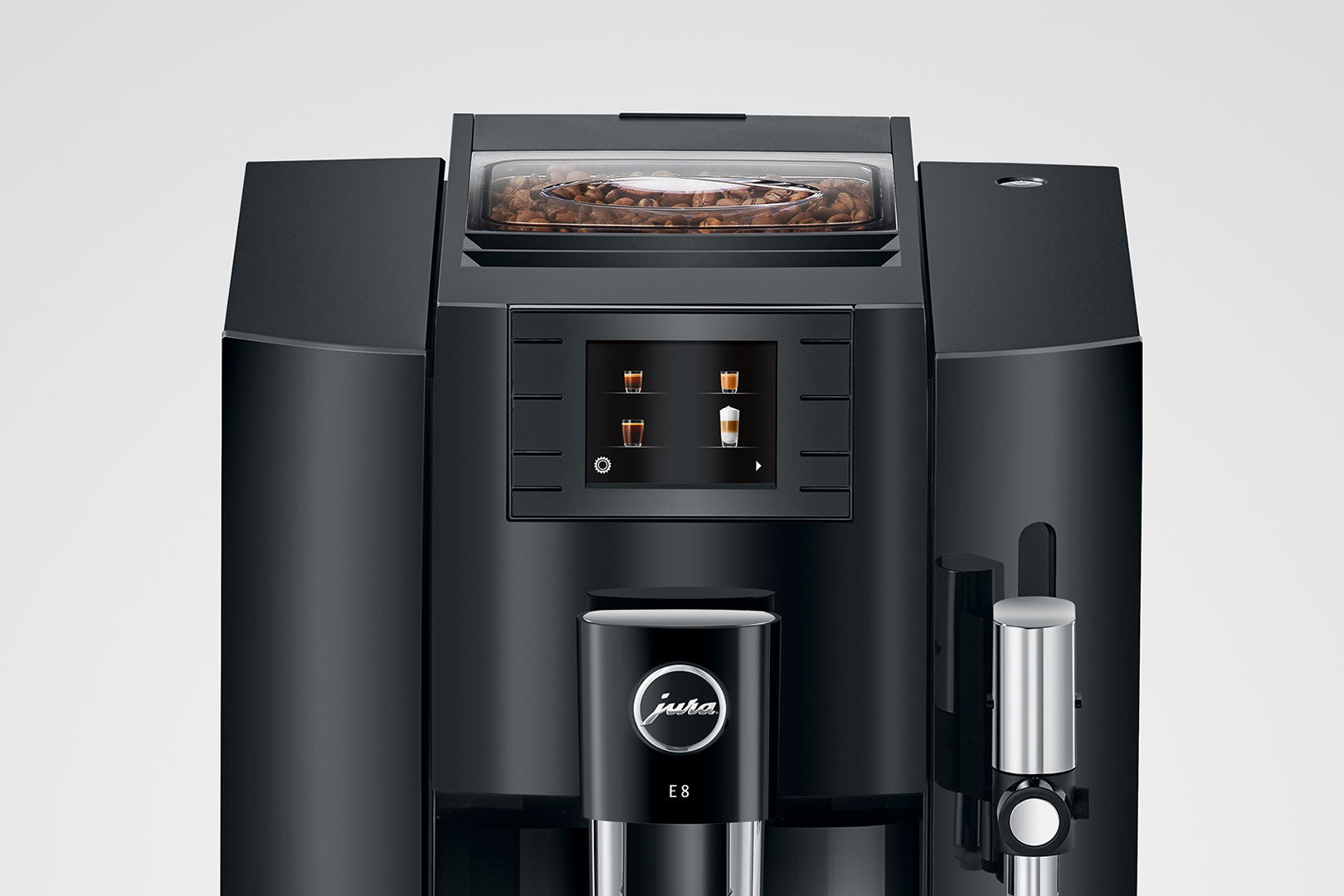 Med maskinens knapper på fronten og det flotte, intuitive TFT-farvedisplay er JURA E8 (EB) utrolig let at betjene og programmere.